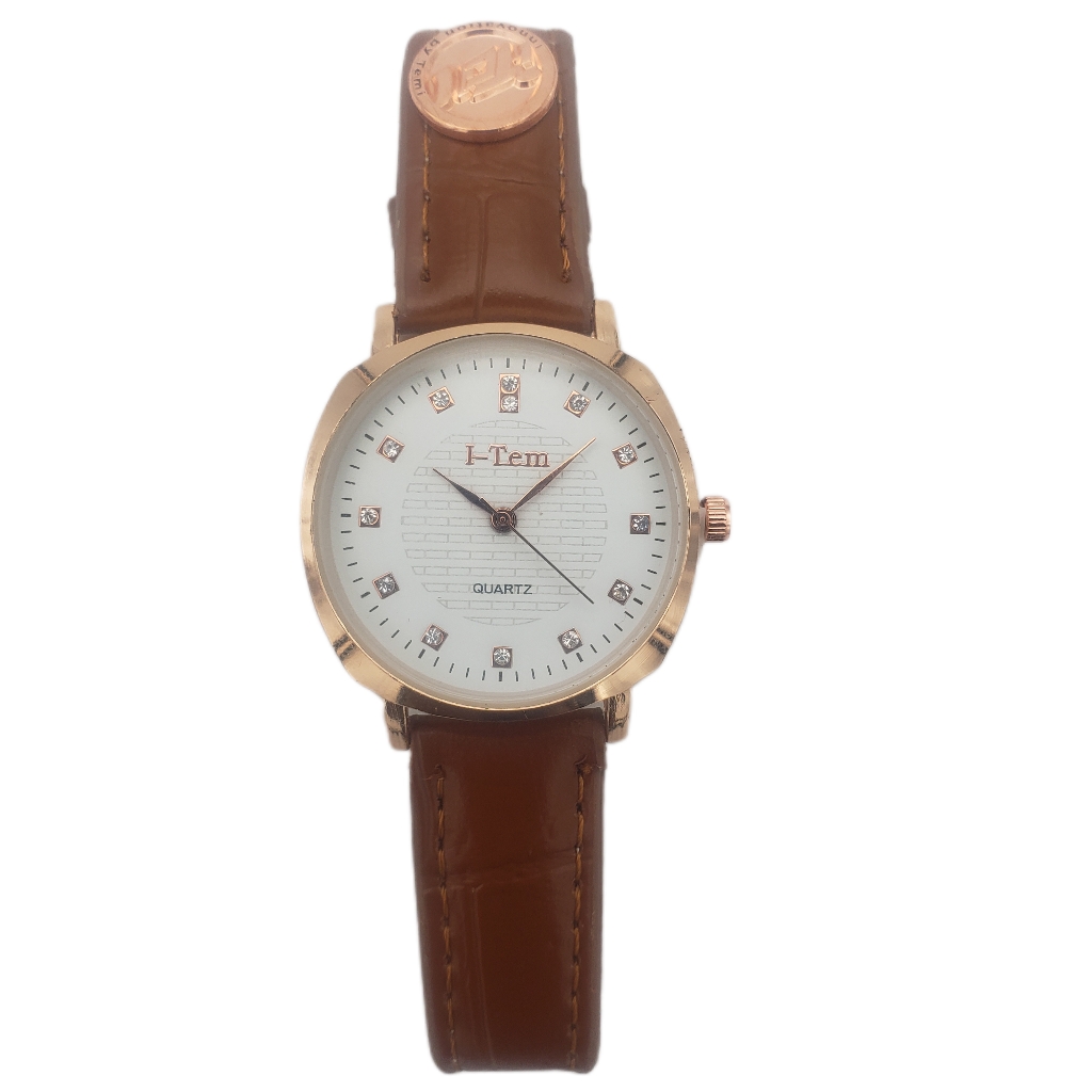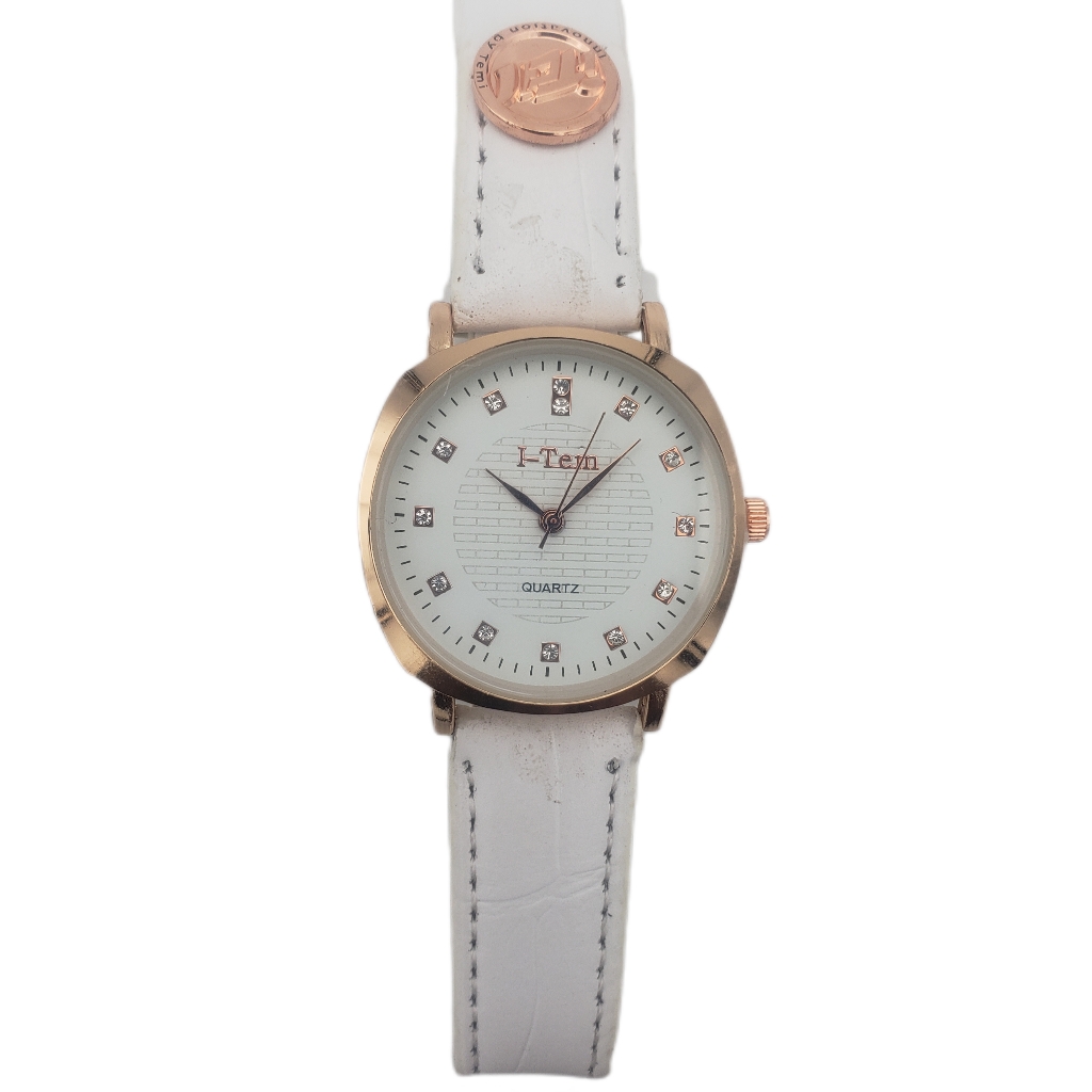 I-Tem Jeliness Max I-TW007 Quartz Watch Rose Gold fancy case, white dial face with tiny diamond stone inscribed in the dial with Color Variation of Quality Italian Leather Strap designed for Ladies with simplicity lifestyle.