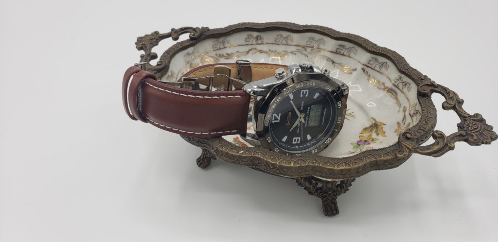 AnalogBuy nowTime Master I-TW40B Chronograph Watch: Analog and Digital Dial, Super Illuminator, Brown Leather Strap | I-Tem Innovation by Temi